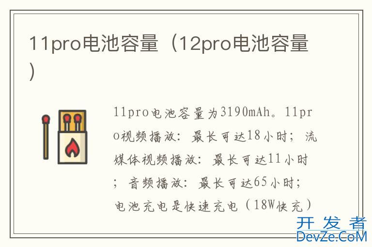 品牌型号:iPhone 11 pro Pro 系统:iOS 15.511pro电池容量为3190mAh。11pro视频播放:最长可达18小时;流媒体视频播放:最长可达11小时;音频播放:最长可达65小