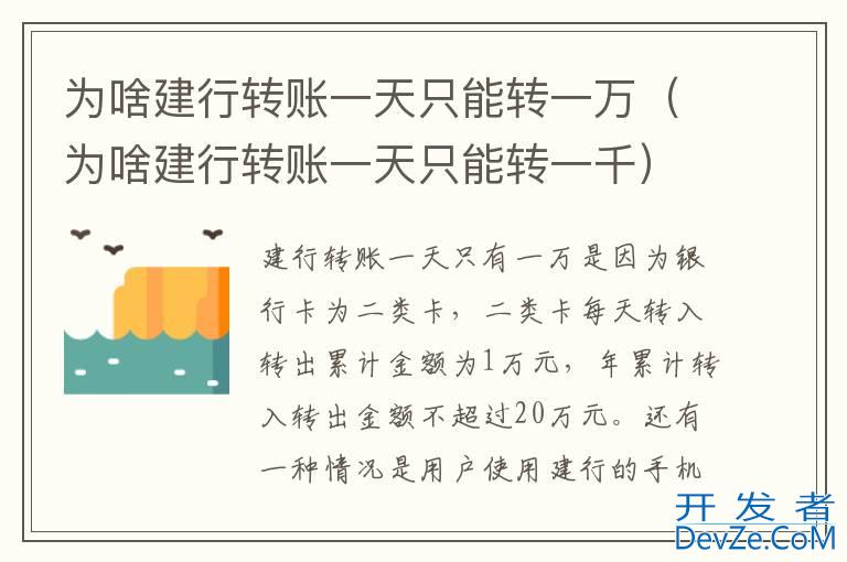 品牌型号:iPhone13 pro pro 系统:iOS 15.5 软件版本:中国建设银行5.7.4.001建行转账一天只有一万是因为银行卡为二类卡,二类卡每天转入转出累计金额为1万元,年累计转入转出