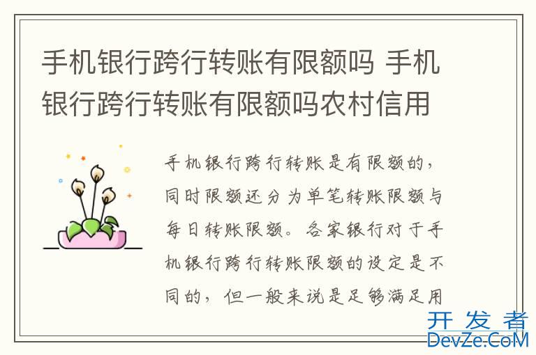 1、手机银行跨行转账是有限额的,同时限额还分为单笔转账限额与每日转账限额。2、各家银行对于手机银行跨行转账限额的设定是不同的,但一般来说是足够满足用户日常转账需求的。开发者_高级运维如果用户认为限额过