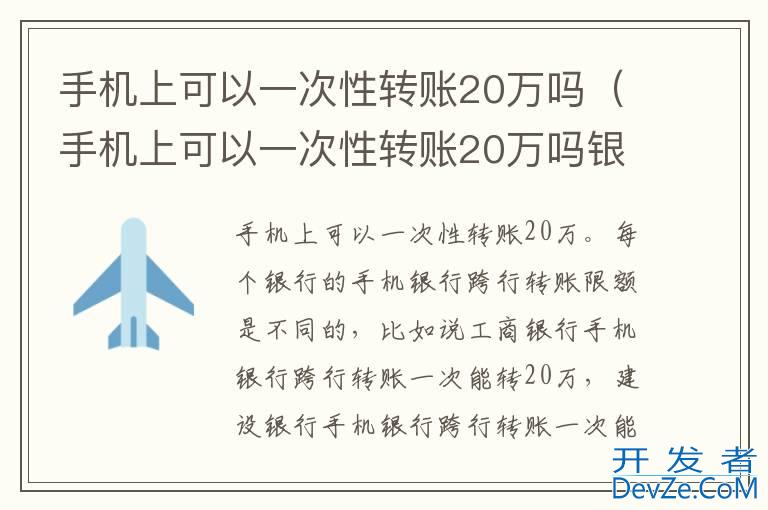 品牌型号:iPhone13 pro pro 系统:iOS 15.6手机上可以一次性转账20万。每个银行的手机银行跨行转账限额是不同的,比如说工商银行手机银行跨行转账一次能转20万,建设银行手机银行跨行
