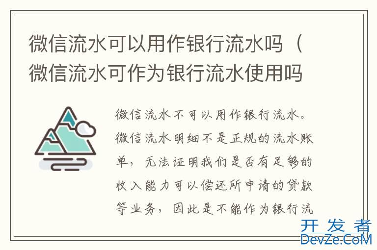 品牌型号:iPhone13 pro pro 系统:iOS 15.6.1 软件版本:微信8.0.26微信流水不可以用作银行流水。微信流水明细不是正规的流水账单,无法证明我们是否有足够的收入能力可以偿还所