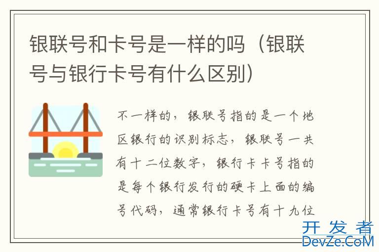 品牌型号:iPhone13 pro pro 系统:iOS 16.0银联号和卡号是不一样的,银联号指的是一个地区银行的识别标志,银联号一共有十二位数字,银行卡卡号指的是每个银行发行的硬卡上面的编号代码,