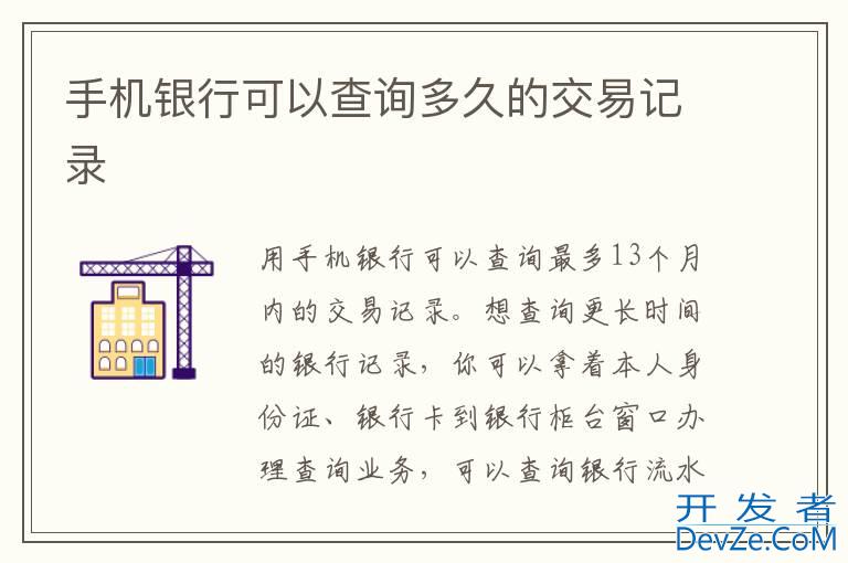 品牌型号:华为P50 系统:HarmonyOS3 软件版本:中国建设银行5.7.2用手机银行可以查询最多13个月内的交易记录。想查询更长时间的银行记录,你可以拿着本人身份证、银行卡到银行柜台窗口办理查