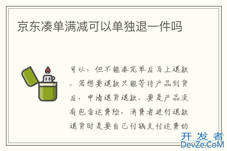 品牌型号:iPhone13 pro pro 系统:iOS 16.0 软件版本:京东11.2.7京东凑单满减是可以单独退一件的,但不能凑完单后马上退款。京东上有一个默认机制,若产品没有收到货之前申请退款