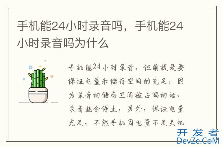 开发者_运维知识库 品牌型号:iPhone13 pro pro 系统:iOS 16.0手机能24小时录音。但前提是要保证电量和储存空间的充足,因为录音的储存空间被占满的话,录音就会停止,另外