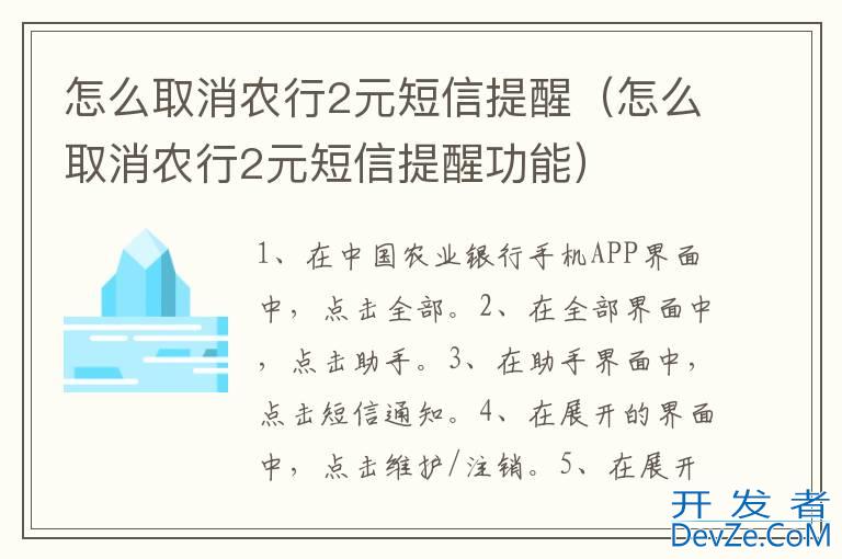 品牌型号:iPhone 12 pro 系统:IOS15.4 软件版本:中国农业银行6.0.0取消农行2元开发者_开发问答短信提醒需要在短信通知中进行注销即可。以iPhone 12 pro手机为例,取消