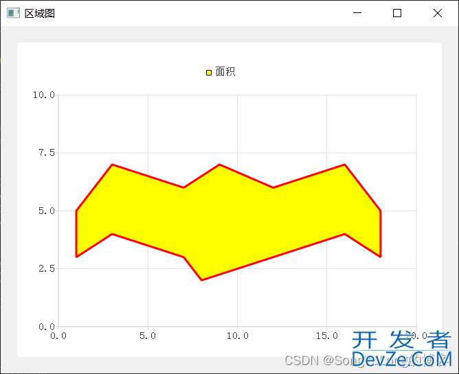 PyQt5 QtChart-区域图 QAreaSeries用于创建区域图数据,传入两个QLineSeries对象。核心代码: