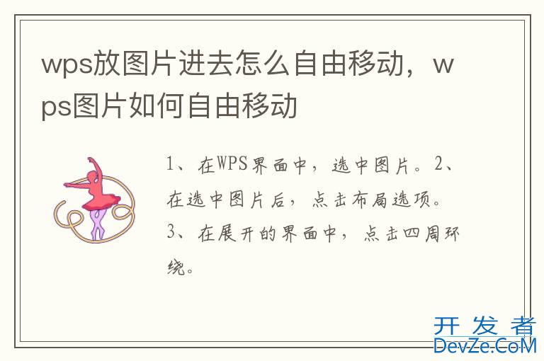 品牌型号:联想拯救者Y9000P 系统:Windows 11 软件版本:WPS office 11.1.0.11194wps放图片进去自由移动需要选中图片后,在布局选项中设置为四周环绕即可。以联想拯救