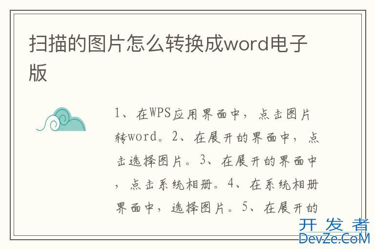 品牌型号:iPhone 12 系统:iOS15.4 软件版本:WPS office 11.17.1扫描的图片转换成word电子版需要在WPS应用界面中,点击图片转word进行操作即可。以iPhone