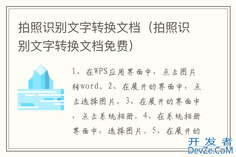 品牌型号:iPhone 12 pro 系统:IOS15.4 软件版本:WPS office 11.1.0.11194拍照识别文字转换文档需要在WPS应用界面中,点击图片转word进行操作即可。以iPh