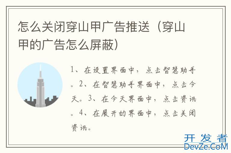 品牌型号:华为p40 系统:HarmonyOS 2.0.0关闭穿山甲广告推送需要在设置界面中,点击智慧助手选择今天关闭资讯即可。以手机华为p40为例,关闭穿山甲广告推送的步骤分为4步,具体操作如下:1