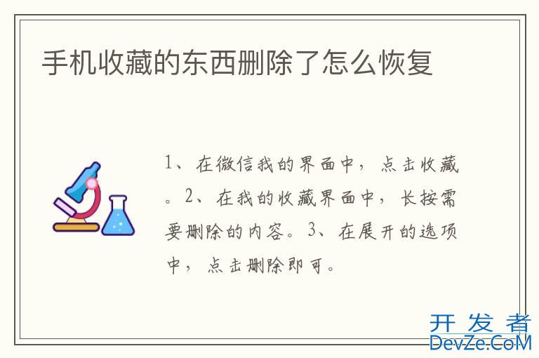 品牌型号:华为p50 系统:HarmonyOS 2.0.0 软件版本:微信 8.0.16手机收藏的东西删除后是无法恢复的。以手机华为p50为例,删除手机微信收藏的步骤分为3步,具体操作如下:开发者_S