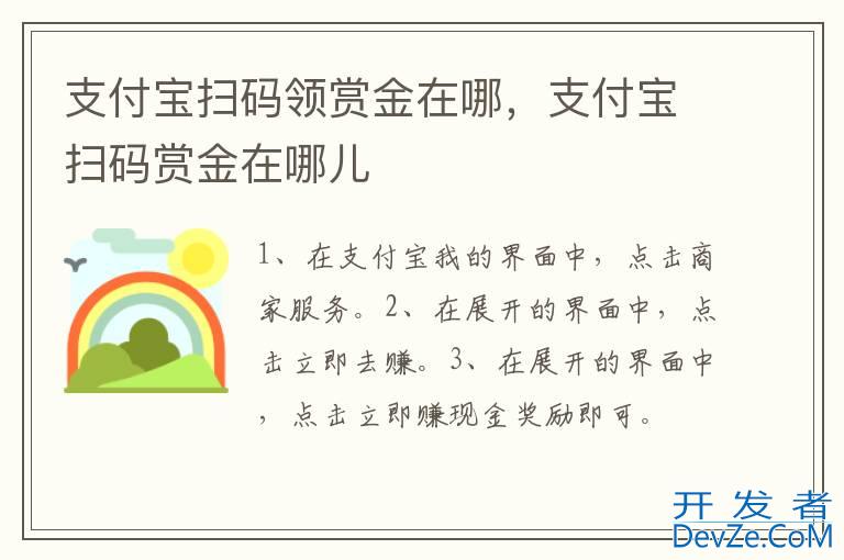品牌型号:华为p40 系统:HarmonyOS 3 软件版本:支付宝10.2.53支付宝扫码领赏金在支付宝商家服务中,选择赚钱红包即可。以手机华为p40为例,找到支付宝扫码领赏金的步骤分为3步,具体操