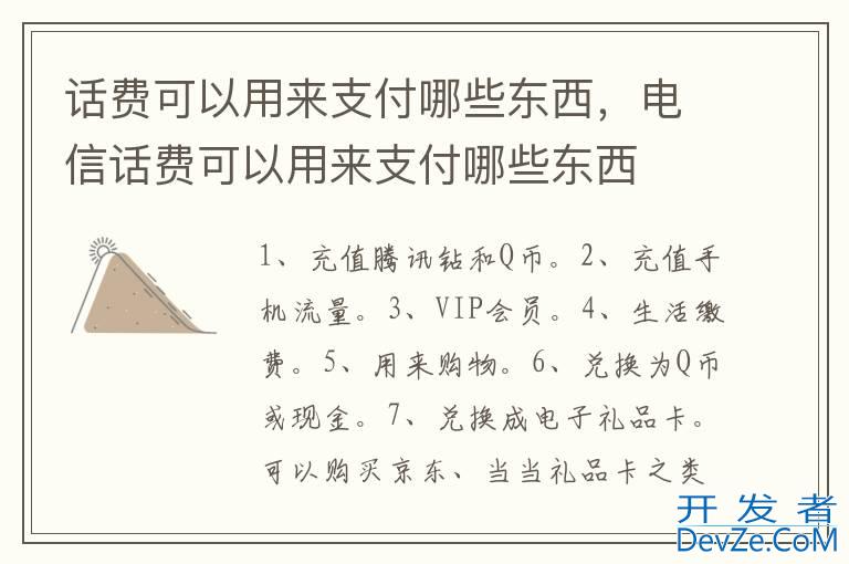 品牌型号:iPhone13 pro pro 系统:iOS 15.6.1话费可以用来支付的东西:1、充值腾讯钻和Q币。手机话费可以充值Q币、游戏币或者开通QQ各种钻,开发者_JAVA百科如红钻黄钻等。2