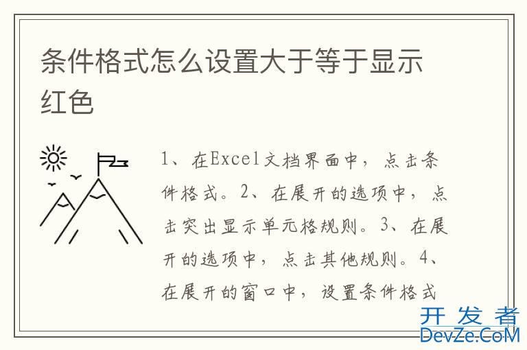 品牌型号:联想拯救者Y9000P 系统:Windows 11 软件版本:Excel 2016条件格式设置大于等于显示红色需要在条件格式中,设置突出显示单元格规则即可。以电脑联想拯救者Y9000P为例,