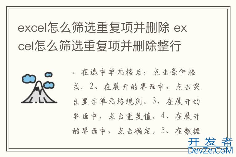 品牌型号:联想拯救者Y9000P 系统:Windows 11 软件版本:excel2016excel筛选重复项并删除需要在选中单元格后,点击条件格式进行筛选删除即可。以联想拯救者Y9000P电脑为例,