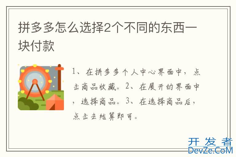 品牌型号:华为p40 系统:HarmonyOS 2.0.0 软件版本:拼多多 5.96.0拼多多选择2个不同的东西一块付款需要在商品收藏中,选择商品并点击去结算即可。以手机华为p40为例,拼多多选择2
