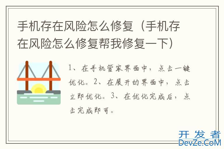 品牌型号:华为p50 系统:HarmonyOS 2.0.0修复手机存在风险需要在手机管家中开发者_C百科,选择一键优化进行操作即可。以手机华为p50为例,修复手机存在风险的步骤分为3步,具体操作如下: