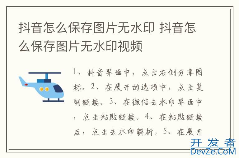 品牌型号:华为p40 系统:HarmonyOS 2.0.0 软件版本:抖音 19.4.0&&微信 8.0.16抖音保存图片无水印需要复制抖音链接并粘贴链接至去水印小程序,选择保存照片即可。以手机华为p