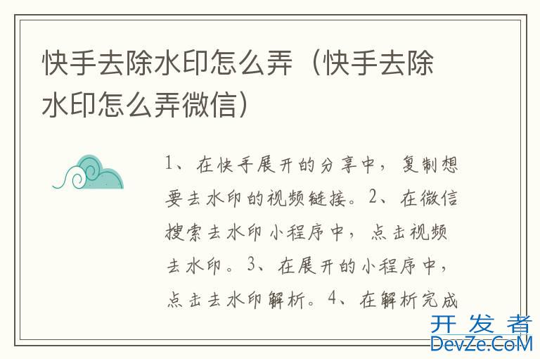 品牌型号:华为p50 系统:HarmonyOS 2.0.0 软件版本:快手9.10.40.229461快手去除水印需要复制视频链接至微信去水印小程序中,保存无水印视频即可。以手机华为p50为例,快手去