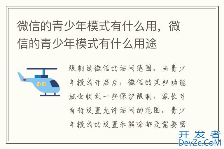 品牌型号:iPhone13 pro pro 系统:iOS 16.0 软件版本:微信8.0.28微信的青少年模式的主要功能就是限制该微信的访问范围。当青少年模式开启后,微信的某些功能就会收到一些保护限制
