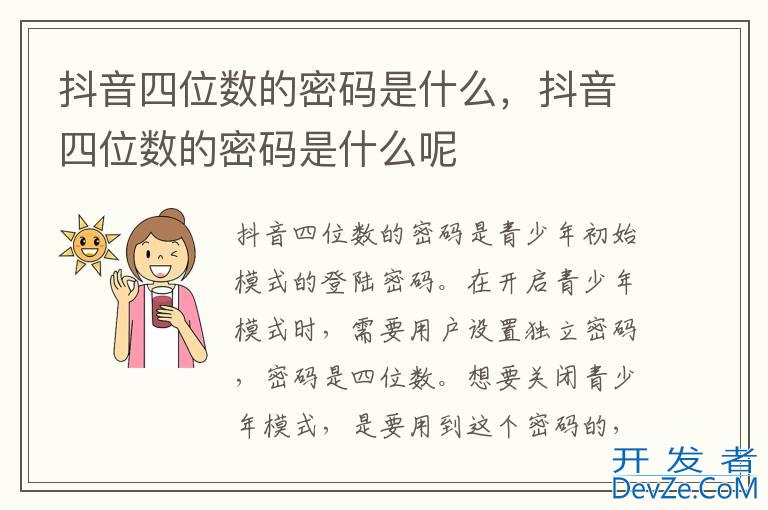 品牌型号:iPhone13 pro pro 系统:iOS 15.6.1 软件版本:抖音21.8.0开发者_JS百科 抖音四位数的密码是青少年初始模式的登陆密码。在开启青少