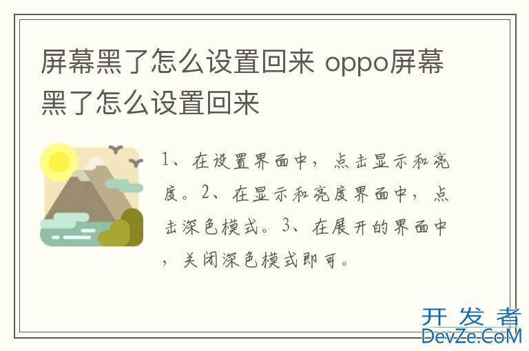 品牌型号:华为p50 系统:HarmonyOS 2.0.0屏幕黑了设置回来需要在设置显示和亮度界面中,将深色模式关闭即可。以华为p50手机为例,屏幕黑了设置回来的步骤为3步,具体操作如下:1点击显示和