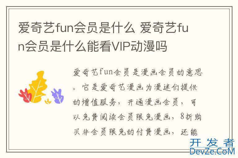品牌型号:iPhone13 pro pro 系统:iOS 16.0 软件版本:爱奇艺13.9.0爱奇艺fun会员是漫画会员的意思。它是爱奇艺漫画为漫迷们提供的增值服务,开通漫画会员,可以免费阅读会员限