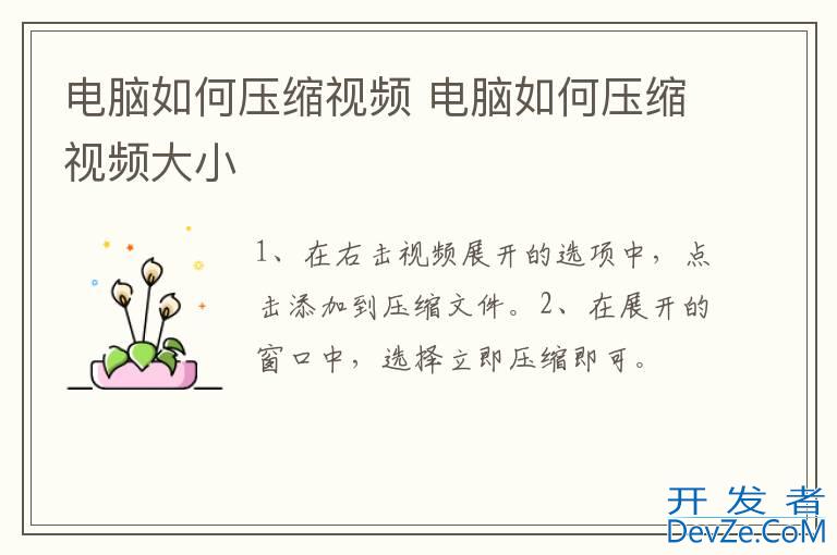 品牌型号:联想拯救者Y9000P 系统:Windows11电脑压缩视频需要右击视频并选择添加到压缩文件即可。以电脑联想拯救者Y9000P为例,电脑压缩视频的步骤分为2步,具体操作如下:开发者_运维知识