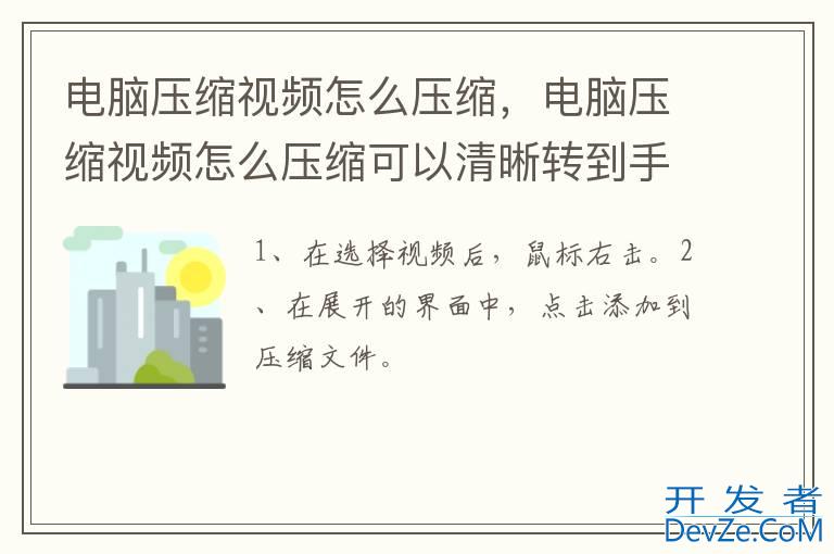 品牌型号:联想拯救者Y9000P 系统:Windows11电脑压缩视频需要鼠标右击,点击添加到文件即可。以联想拯救者Y9000P电脑为例,电脑压缩视频步骤为2步,具体操作如下:开发者_如何学JAVA