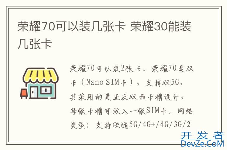 品牌型号:荣耀70 系统:Magic UI 6.1荣耀70可以装2张卡。荣耀70是双卡(Nano SIM卡),支持双5G,其采用的是正反双面卡槽设计,每张卡槽可放入一张SIM卡。网络类型:支持联通5G