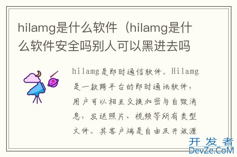 品牌型号:iPhone13 pro pro 系统:IOS15.5 软件版本:Hilamg1.0.8hilamg是即时通信软件。Hilamg是一款跨平台的即时通讯软件,用户可以相互交换加密与自毁消息,发