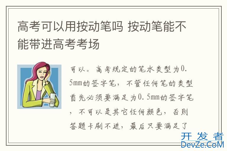 品牌型号:得力按动笔 系统:DLSX-S01高考是可以用按动笔的。高考规定的笔水类型为0.5mm的签字笔,不管任何笔的类型首先必须要满足为0.5mm的签字笔,其次必须满足为黑色签字笔,不可以是其它任何