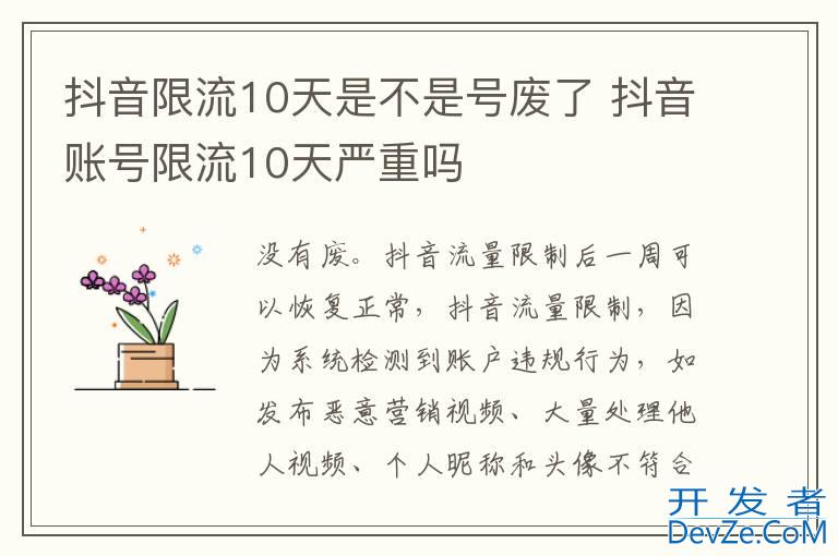 品牌型号:iPhone13 pro pro 系统:IOS15.5 软件版本:抖音21.5.0抖音限流10天号没有废。抖音流量限制后一周可以恢复正常,抖音流量限制,因为系统检测到账户违规行为,如发布恶意