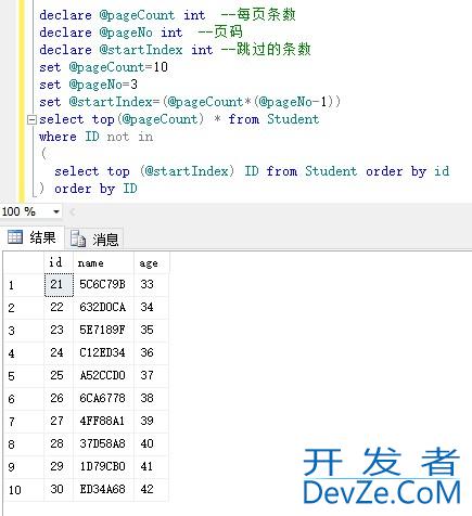 一www.devze.com、创建测试表 CREATE TABLE [dbo].[Student]( [id] [int] NOT N编程客栈ULL, [name] [nvarchar](50) NULL,