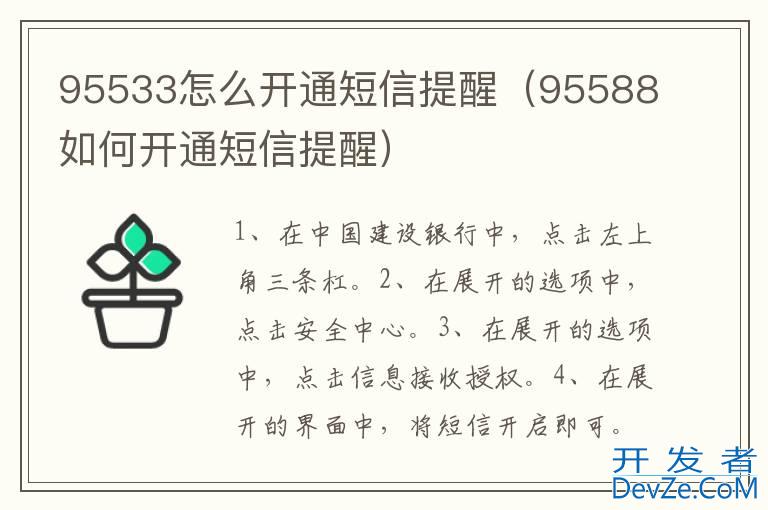 品牌型号:华为p50 系统:HarmonyOS 2.0.0 软件版本:中国建设银行 5.6.595533开通短信提醒可以在中国建设银行中进行开通。以手机华为p40为例,95533开通短信提醒的步骤分为