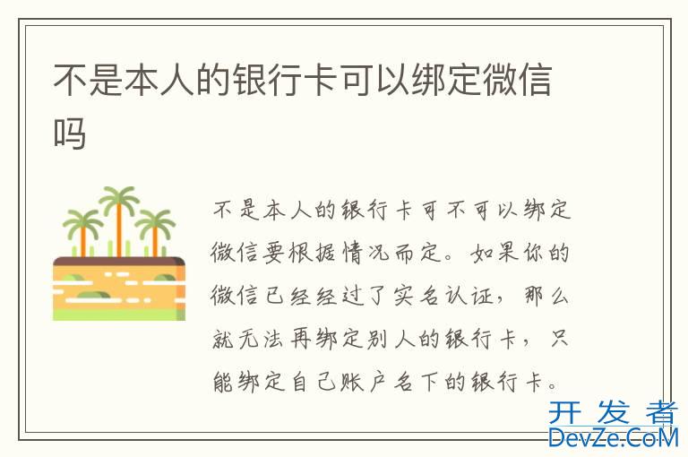 品牌型号:iPhone13 pro pro 系统:IOS15.5 软件版本:微信8.0.26开发者_开发技巧 不是本人的银行卡可不可以绑定微信要根据情况而定。如果你的微信已经经过了实名认证,那么