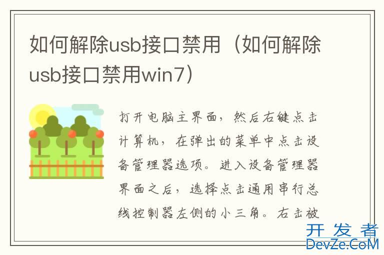 打开电脑主界面,然后右键点击“计算机”,在弹出的菜单中点击“设备管理器”选项。进入设备管理器界面之后,选择点击“通用串行总线控制器”左侧的“小三角”。右击被禁用的USB端口。选择点击“启用”选项即可恢