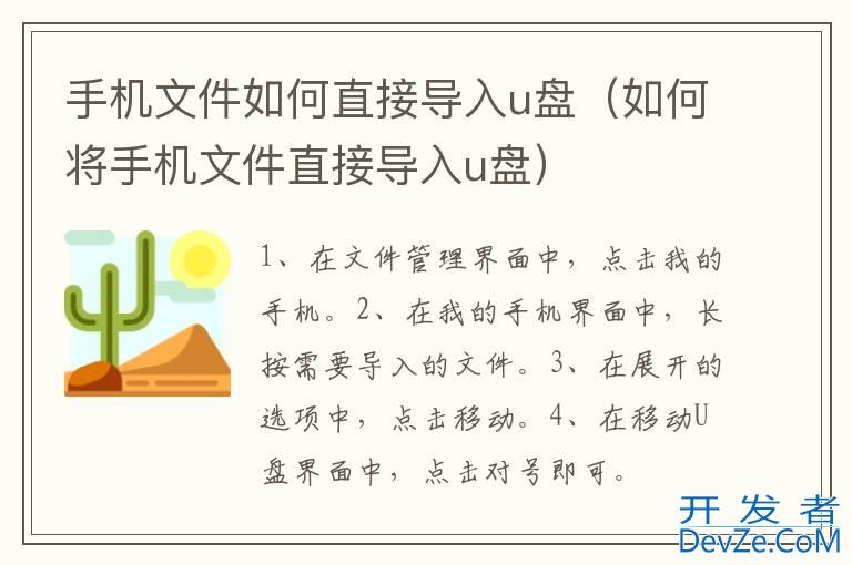 品牌型号:华为p50 系统:HarmonyOS 2.0.0手机文件直接导入u盘需要在手机文件管理中,选择文件移动至U盘即可。以手机华为p50为例,手机文件直接导入u盘的步骤分为4步,具体操作如下:1点