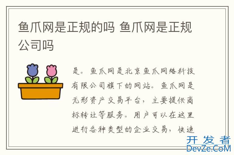 品牌型号:华为P50 系统:HarmonyOS3 软件版本:鱼爪网1.0.0鱼爪网是正规的。鱼爪网是北京鱼爪网络科技有限公司旗下的网站。鱼爪网是无形资产交易平台,主要提供商标转让、网店转让、微信公众号