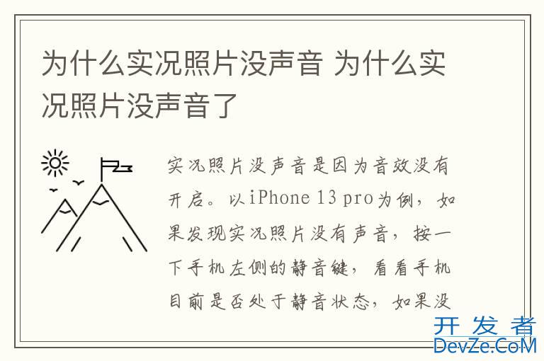 品牌型号:iPhone13 pro pro 系统:IOS15.4实况照片没声音是因为音效没有开启。以iPhone13 pro pro为例,如果发现实况照片没有声音,按一下手机左侧的静音键,看看手机目前