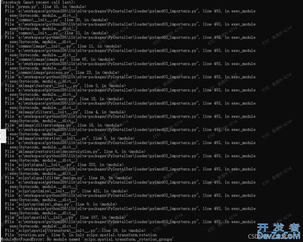 1、ModuleNotFoundError: No module named &landroidsquo;scipy.spatial.transform_rotaion_groups’ 解决办法:–hidden-import scipy.spatial.transform._rotation_groups