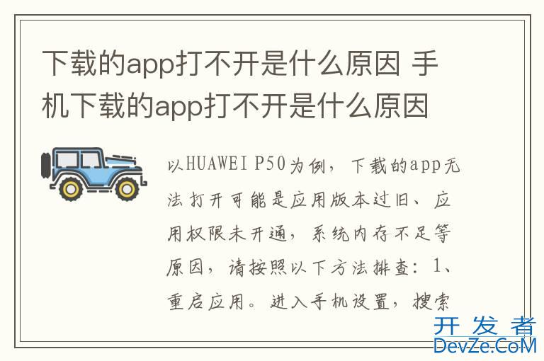品牌型号:HUAWEI P50 系统:HarmonyOS 2以HUAWEI P50为例,下载的app无法打开可能是应用版本过旧、应用权限未开通,系统内存不足等原因,请按照以下方法排查:1、重启应用。进