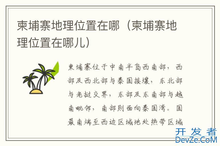 开发者_如何学运维 柬埔寨位于中南半岛西南部,西部及西北部与泰国接壤,东北部与老挝交界,东部及东南部与越南毗邻,南部则面向泰国湾。全国最南端至西边区域地处热带区域,北方以