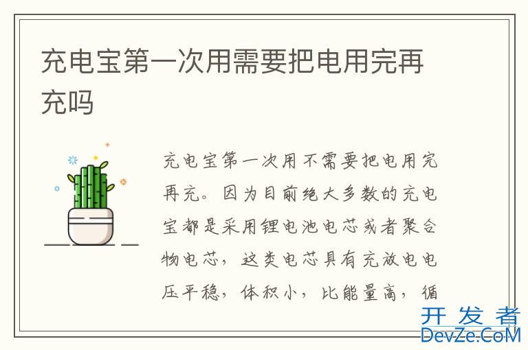 品牌型号:睿能宝充电宝 系统:RP-PB1205开发者_如何学编程 充电宝第一次用不需要把电用完再充。因为目前绝大多数的充电宝都是采用锂电池电芯或者聚合物电芯,这类电芯具有