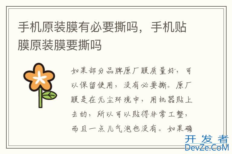 品牌型号:iPhone13 pro pro 系统:IOS15.4开发者_如何学编程 如果部分品牌原厂膜质量好,可以保留使用,没有必要撕。原厂膜是在无尘环境中,用机