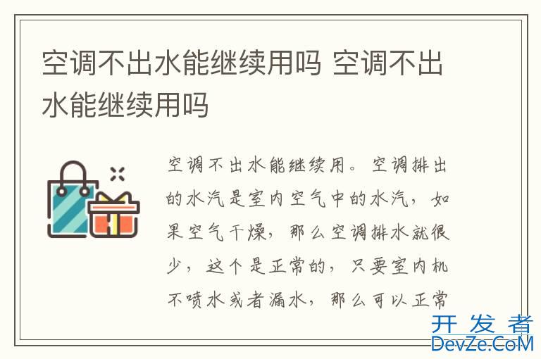 品牌型号:海尔空调 系统:KFR-35GW空调不出水能继续用。空调排出的水汽是室内空气中的水汽,如果空气干燥,那么空调排水就很少,这个是正常的,只要室内机不喷水或者漏水,那么可以正常使用。如果空调不流