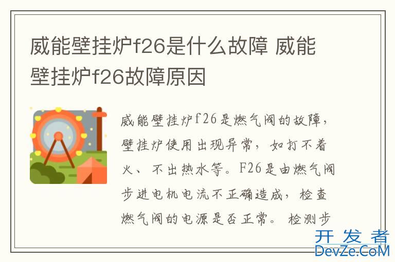品牌型号:威能壁挂炉 系统:L1PB38-VUW威能壁挂炉f26是燃气阀的故障,壁挂炉使用出现异常,如打不着火、不出热水等。F26是由燃气阀步进电机电流不正确造成,检查燃气阀的电源是否正常。 检测步进