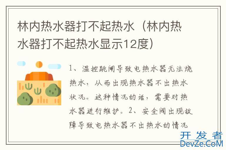 品牌型号:林内热水器 系统:RBS-24C301、温控跳闸导致电热水器无法烧热水,从而出现热水器不出热水状况。这种情况的话,需要对热水器进行维护。2、安全阀出现故障导致电热水器不出热水的情况。安全阀出