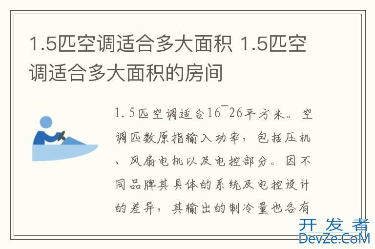 品牌型号:奥克斯空调 系统:KFR-35GW开发者_运维百科 1.5匹空调适合16~26平方米。空调匹数原指输入功率,包括压机、风扇电机以及电控部分。因不同品牌